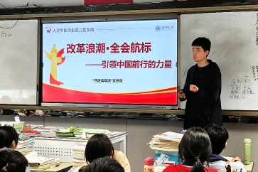 当星空平台人文学院学生第三党支部的蔡雯雯、蒋泽冰等青年学子,在高校以“深入推进党的自我革命”为主题宣讲中国共产党的历史时,台下听众中有一双眼睛格外明亮——第三党支部的党员刘雪婷被宣讲中的故事和理念深深震撼。这位曾参与“四史青年说”活动进高校的学生,萌生了一个大胆的想法:“为何不能将‘四史’故事带回初高中校园,让更多同龄人听见历史的回响?”