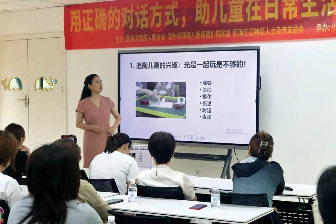 日前,在温州市利宝学校的课堂上,教师们正根据学生能力设计阶梯式任务。这一变化源于李晓燕团队的“分层支持”培训。通过“教师模拟课堂”“案例写作”等实操演练,教师将干预技巧融入教学,课堂效率大幅提升。与此同时,家长从“焦虑的旁观者”转变为“康复的启明星”,家校联动形成“教师成长—学生进步—家长支持”的良性循环。
