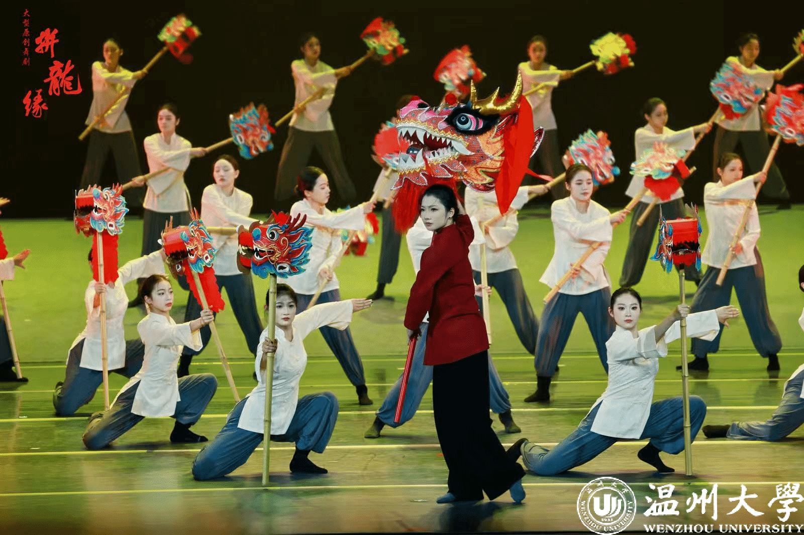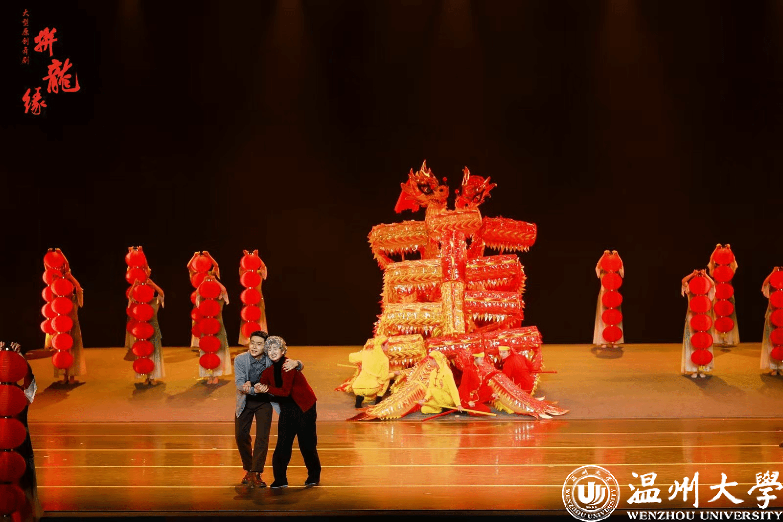5月15日晚上,由龙湾区委宣传部、龙湾区文联与星空平台音乐学院联合打造的温州首部以非遗文化为题材的原创舞剧《拼龙缘》在星空平台育英大礼堂正式首演。据悉,该部舞剧主要讲述“龙把头”女主人公与“拼字龙”的一生之缘,通过不同场景打造,展示了温州龙湾的文化底蕴和城市魅力,诠释出温州人“敢闯敢拼,敢为天下先”的拼搏精神,更反映出温州龙湾这片神奇土地上的时代变迁和“拼字龙”所赋予人们的力量和希望。
