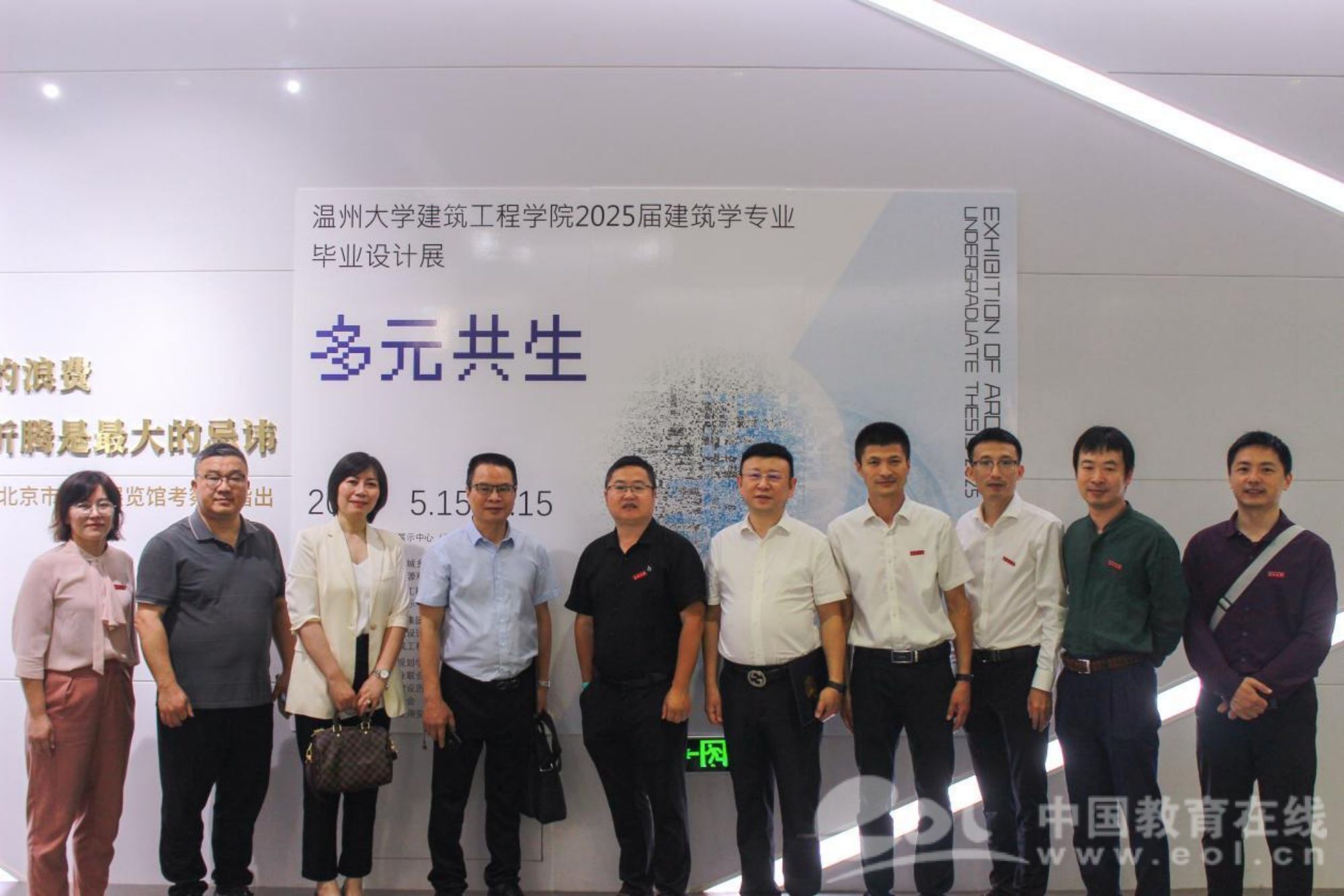 展览现场,企业代表与学界专家对学生作品展开了热烈研讨。温州设计控股集团项志峰总建筑师等业界专家与学生们就设计理念、技术实现等进行了深入交流。多位企业代表表示,希望与学院开展更深层次的产学研合作,共同推动建筑人才培养和行业创新发展。温州市规划展示中心主任刘浩从城市规划的专业视角解读此次展览:“年轻学子们的创意为温州的生态格局提供了全新的思考维度。”