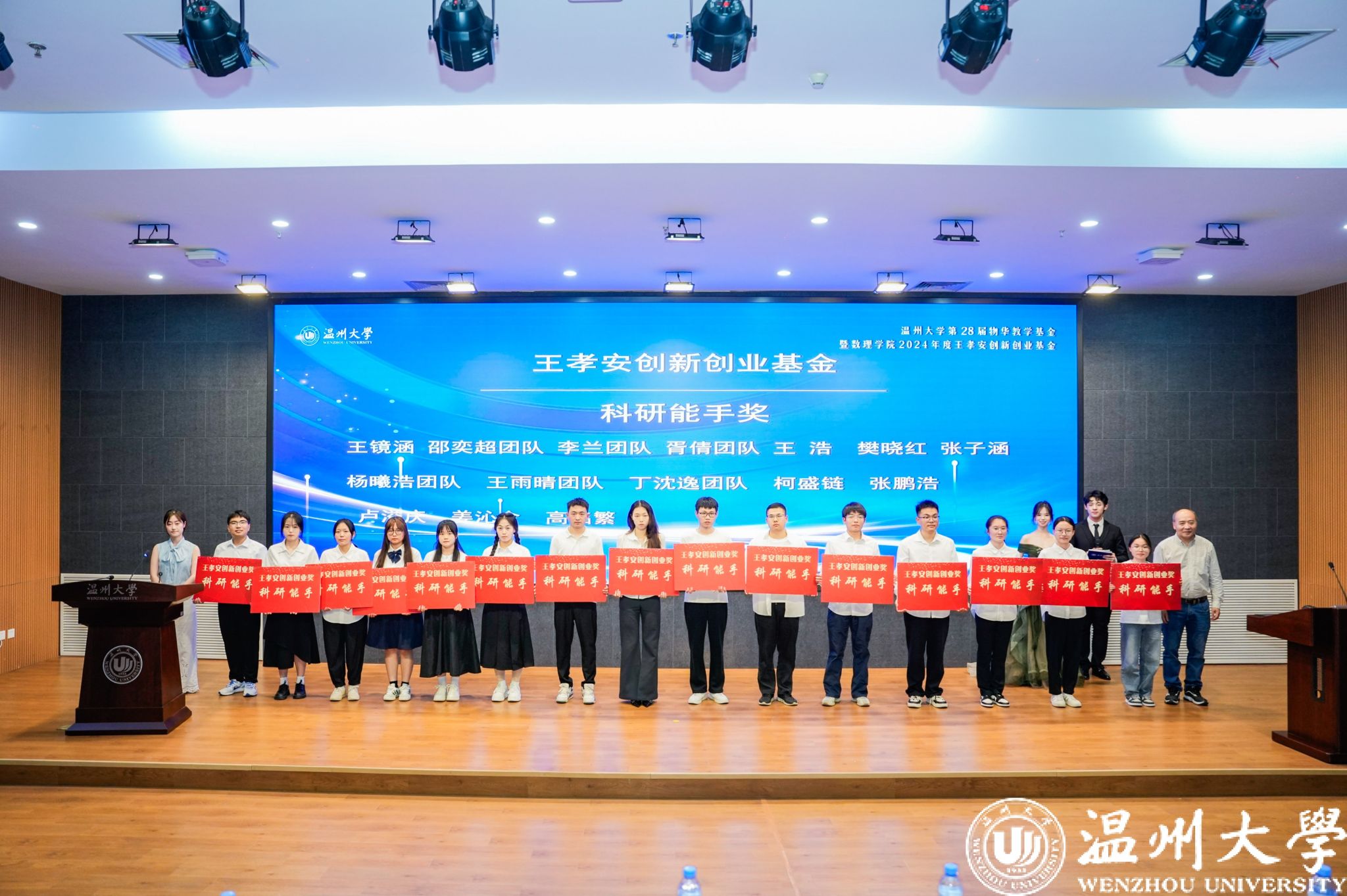 2024年度王孝安创新创业基金颁奖典礼是温大数理学院对科技创新理念的深入贯彻,是对师生一年来辛勤付出和卓越成果的充分肯定。它激励着广大师生与新时代同向同行,敢为人先,敢于突破,以聪明才智贡献国家,以开拓进取服务社会,为学院的发展注入源源不断的创新动力,在创新创业的征程中续写更加精彩的篇章。