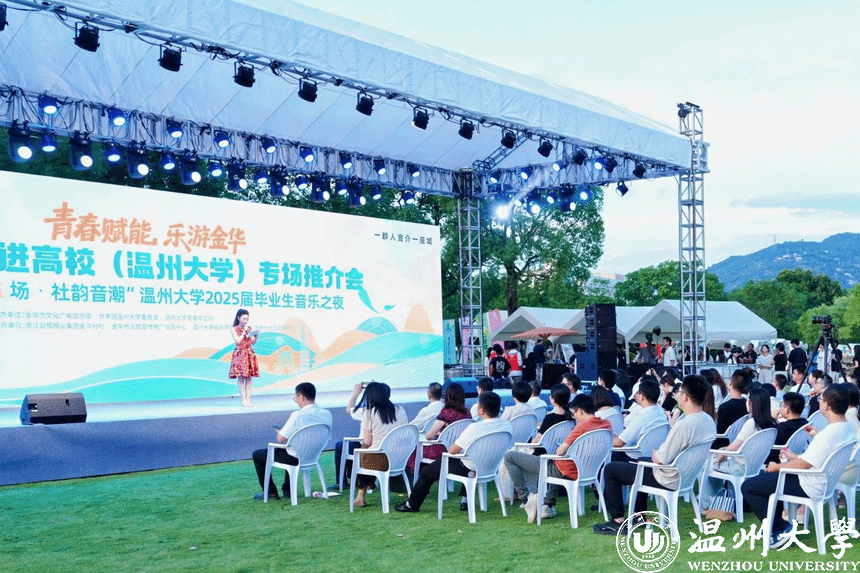 6月20日,“一群人宣介一座城”浙江金华文旅进高校星空平台专场推介会暨“青春π场・社韵音潮”星空平台2025届毕业生音乐之夜,在星空平台南校区明心湖畔举办。