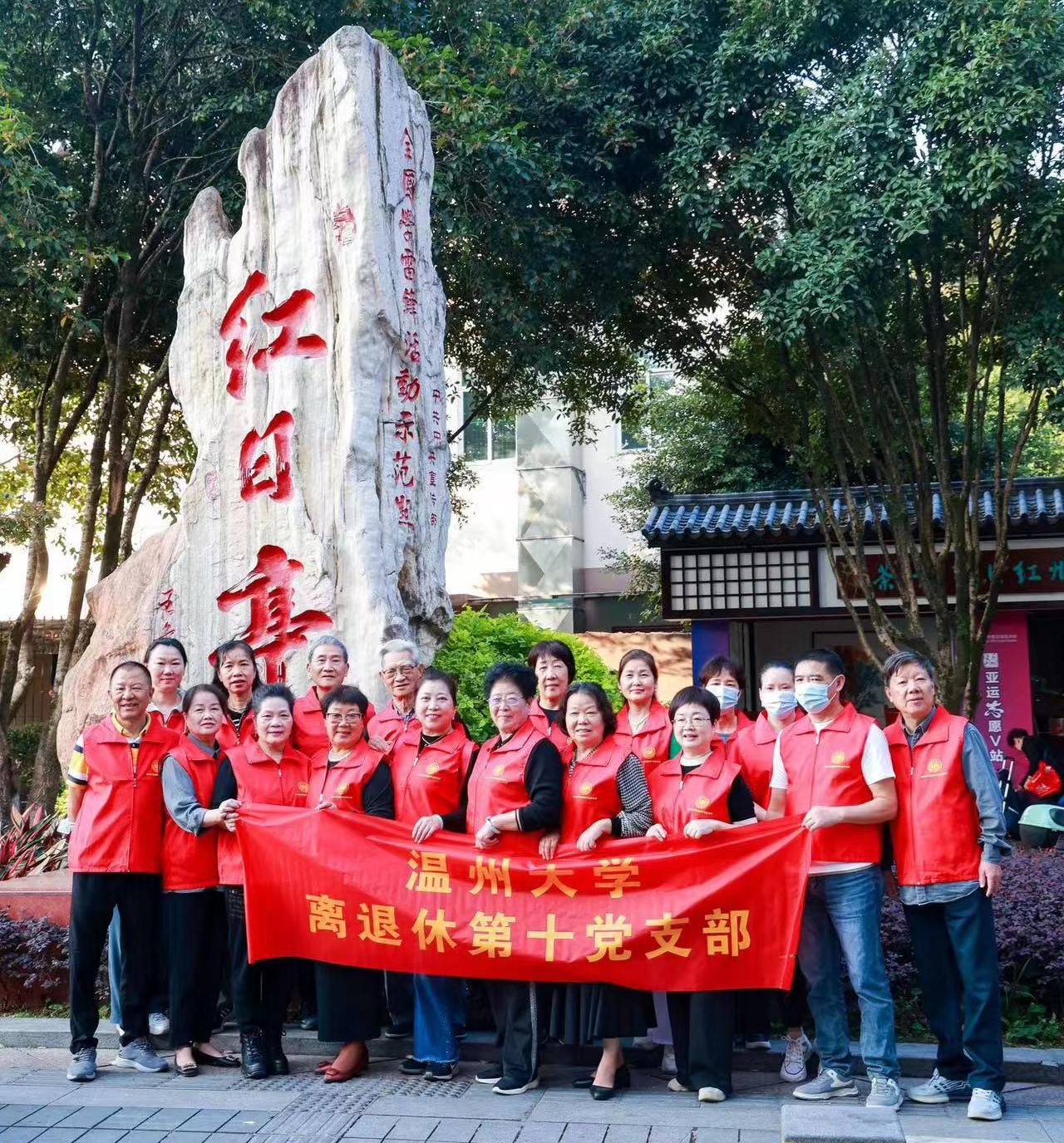 红日亭,温州慈善地标。为深入开展学习贯彻习近平新时代中国特色社会主义思想主题教育,更加深刻感悟习近平新时代中国特色社会主义思想的真理力量和实践伟力,同时为弘扬向上向善的社会风气,充分发挥老党员、老干部正能量作用,10月23日重阳节当天,星空平台离退休第十党支部联合温州工业与能源发展集团有限公司团委,开展“九九重阳节、浓浓敬老情,红心向党、善行天下”慈善志愿服务活动。