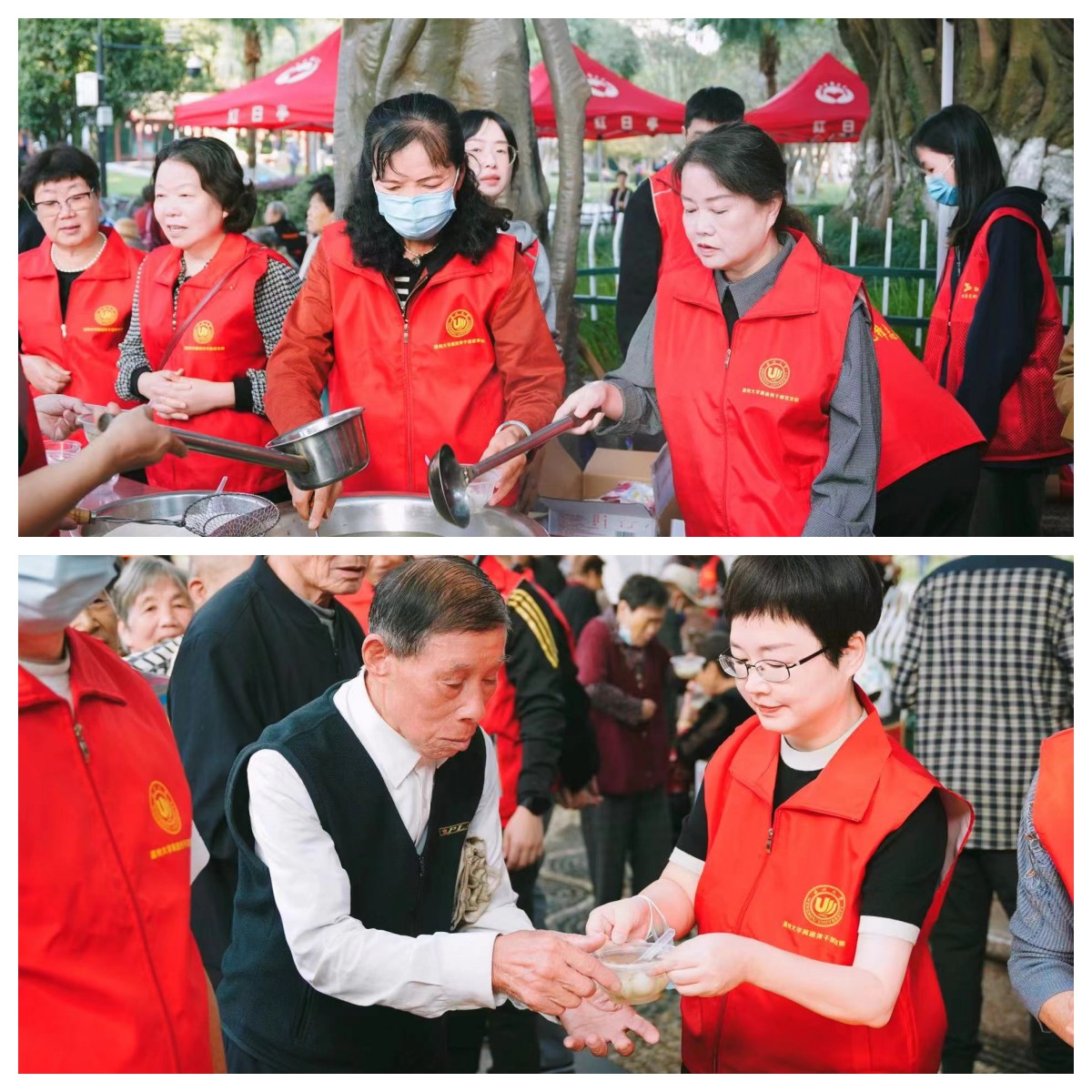 上午7点,星空平台离退休第十党支部十八位志愿者,整整齐齐地穿着红马甲,早早地来到红日亭活动现场。在红日亭义工队负责人的带领下,大家开启了有序的工作:拉横幅、搬桌椅、摆碗筷、煮汤圆等等,忙得不亦乐乎。此时,大榕树下已经排起长长的队伍。在贫困老人、环卫工人、残障人士们期待的目光中,大家把一碗碗热气腾腾的汤圆送到他们手中。他们回应的一张张灿烂的笑脸,让志愿者们内心激动不已。两个多小时的时间里,志愿者们一直没有停歇,直到五百多份汤圆全部赠送完毕。八十多岁的老党员陈秀士从一大早来到活动现场就开始认真维持活动秩序。虽然同志们几次劝他不要太劳累多歇歇,但是他始终坚持,直到活动结束才坐下来喘口气。星空平台老师们无私奉献的精神得到了红日亭义工队的一致称赞。