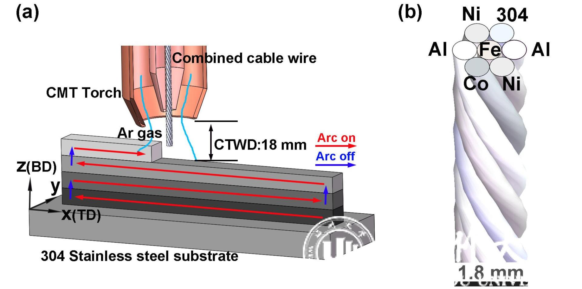 This paper proposes a method of using a new type of stranded wire for high-entropy alloy arc additive manufacturing, which provides a high-efficiency, high-quality and promising manufacturing method for the manufacture of large-size and complex-shaped high-entropy alloy materials and products. The Al-Co-Cr-Fe-Ni high-entropy alloy achieves an excellent combination of strength of 2.8GPa and plasticity of 42%. With this method, a series of results have been published in other journals of engineering technology such as JOURNAL OF ALLOYS AND COMPOUNDS, MATERIALS SCIENCE AND ENGINEERING A.
