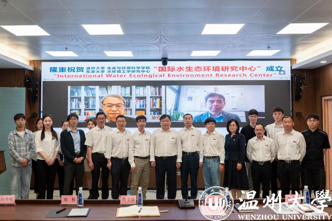 On the morning of May 10, the inauguration of International Aquatic Eco-Environment Research Center jointly established by Wenzhou University and University of Tokyo was held in the International Conference Room, Yuying Library through ZOOM. Professor Satoshi Takizawa, Director of the Research Center for Water Environmental Technology, University of Tokyo, Professor Katayama Hiroyuki, School of Engineering, University of Tokyo, Professor Zhao Min, President of Wenzhou University, and heads of International Relations Office, Office of Science and Technology, and relevant teachers and students attended the meeting.