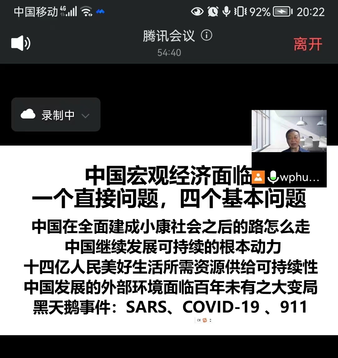 讲座信息量丰富、思路清晰、视野开阔、见解独到。星空平台商学院师生、星空平台华人华侨研究学者、特约金融机构高管、中国人民大学世界经济研究中心博士团队、中国人民大学部分校友共计100余人参加了本次线上线下讲座。