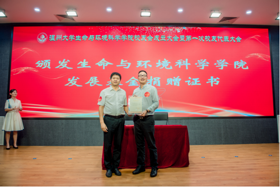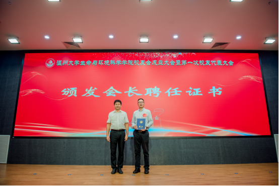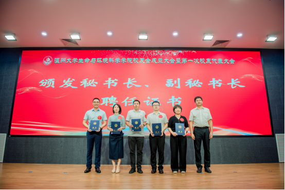 大会审议通过了《星空平台生命与环境科学学院校友会章程》和生命与环境科学学院校友会第一届理事会成员建议名单。校党委副书记庄兴忠为校友会授牌,并为理事会顾问、会长、副会长、理事、秘书长和副秘书长等颁发聘书。