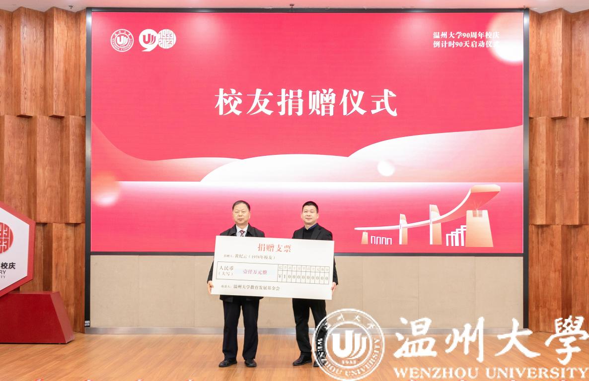 校友捐赠仪式上,人文学院1978级校友黄纪云先生向母校捐赠1000万元设立“贤庆奖教助学基金”;商学院1990级匿名校友回馈母校1000万元。温大校友事业兴盛、情系母校、慷慨解囊,充分展现了爱校荣校的宝贵情怀。
