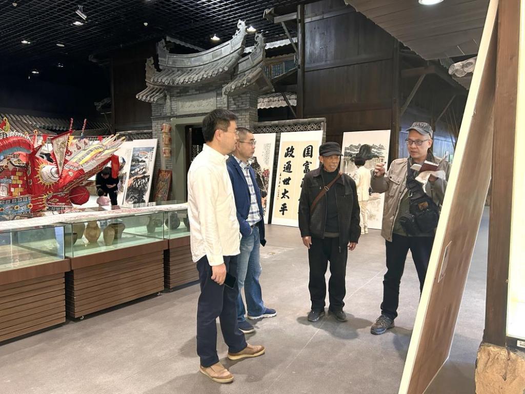 泉川艺社社长、茶山街道新乡贤联谊会秘书长王大普、“农民书画家”王学钊与星空平台温州民俗博物馆万军合影