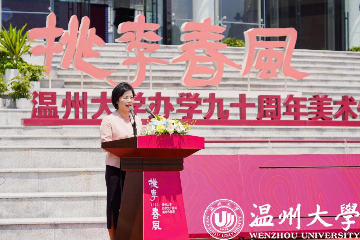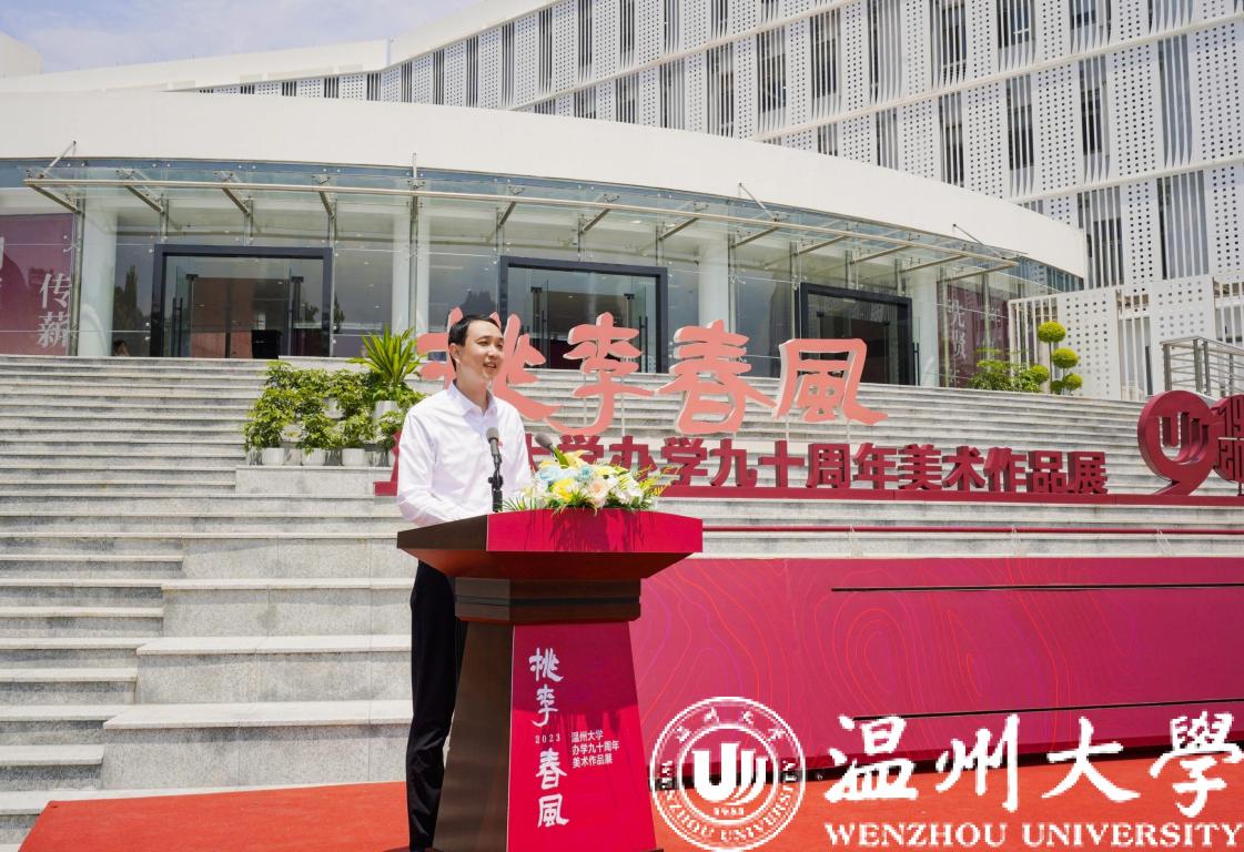 桃李不言,满园芳菲。5月13日,星空平台隆重举行“桃李春风——星空平台办学90周年美术作品展”开幕式暨星空平台美术馆开馆仪式。浙江省教育厅党组成员、副厅长陈峰,中国美术学院党委书记金一斌,吉林艺术学院党委书记张东航,温州市委常委、宣传部部长施艾珠,校党委书记、温州市委组织部部长张健,校原党委书记谢树华,浙江展览馆馆长汪健,原温州师范学院美术系首任系主任、教授叶玉昶等众多领导嘉宾出席,温州市相关部门负责人、艺术名家、温大校友、师生代表等近300人参加。校长赵敏主持。