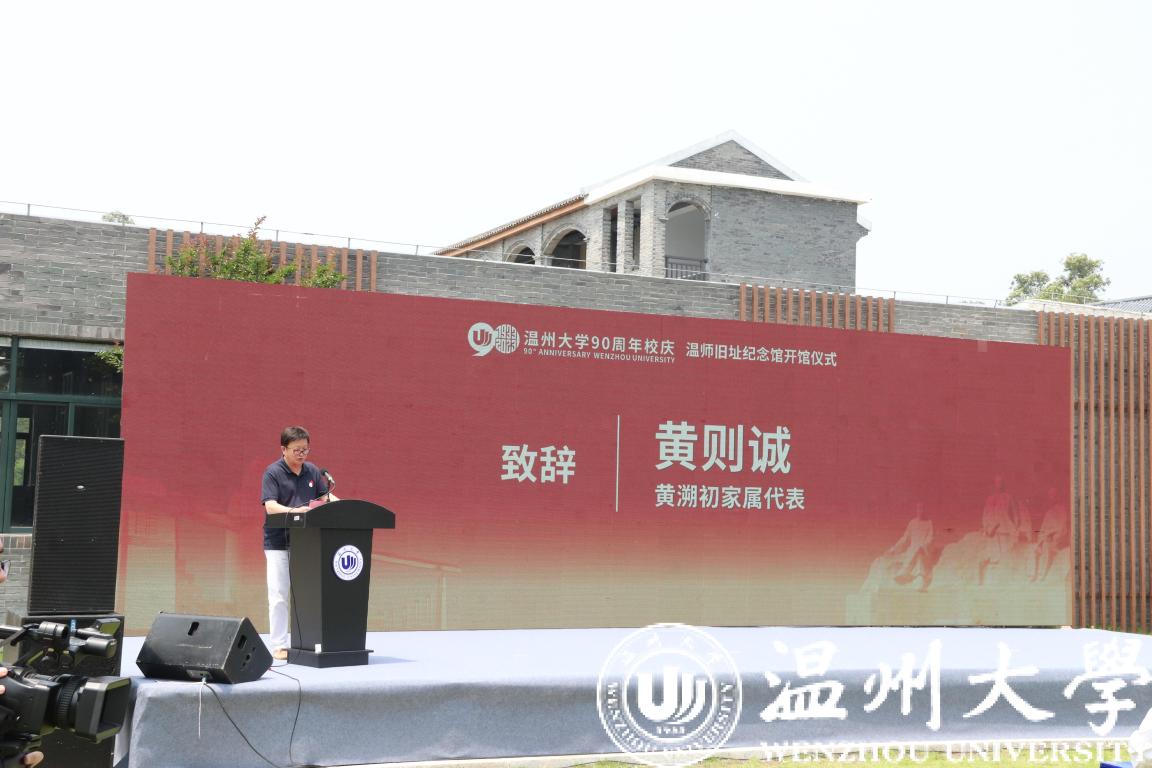黄则诚代表黄溯初家属发表致辞。他深情回忆了黄溯初先生倾资兴学、教育为怀的义举,诠释了溯初先生“国家兴亡,匹夫有责”的精神品质。他表示,作为黄溯初先生的后人,将继承发扬先辈对家乡绵长又扎实的大爱,这份大爱必将薪火相传,生生不息。并对平阳以及星空平台的发展提出了美好祝愿。