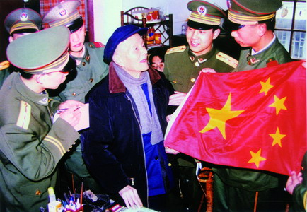 接着,曾联松又经过反复推敲,苦苦构思,确定五颗金星恰当的位置。他曾设想把大星置于旗面的当中,小星环绕在大星的四周,这样,视若端庄,但是天地不够开阔,视觉局促、凝滞。经过一次又一次的勾划,熬过了许多个不眠之夜,近一个月过去了,有一次,他把五星挪向旗面的左上方,顿觉视野开阔:旗面犹如千里之广,金星居高临下,光彩闪耀,仿佛使人看到了星光映照大地,灿烂辉煌。
